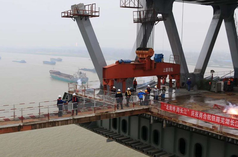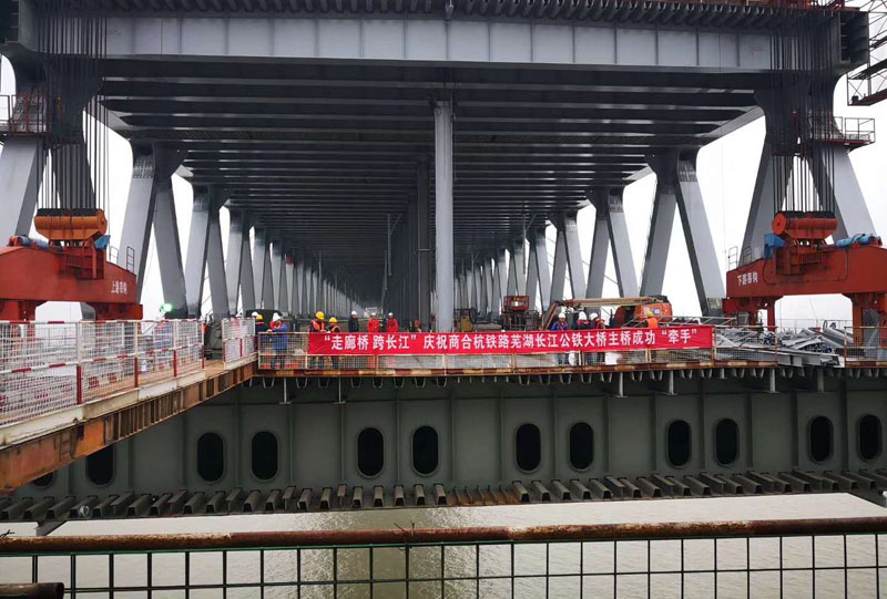 大橋公司:商合杭鐵路蕪湖長(zhǎng)江公鐵大橋南北兩岸在空中成功牽手